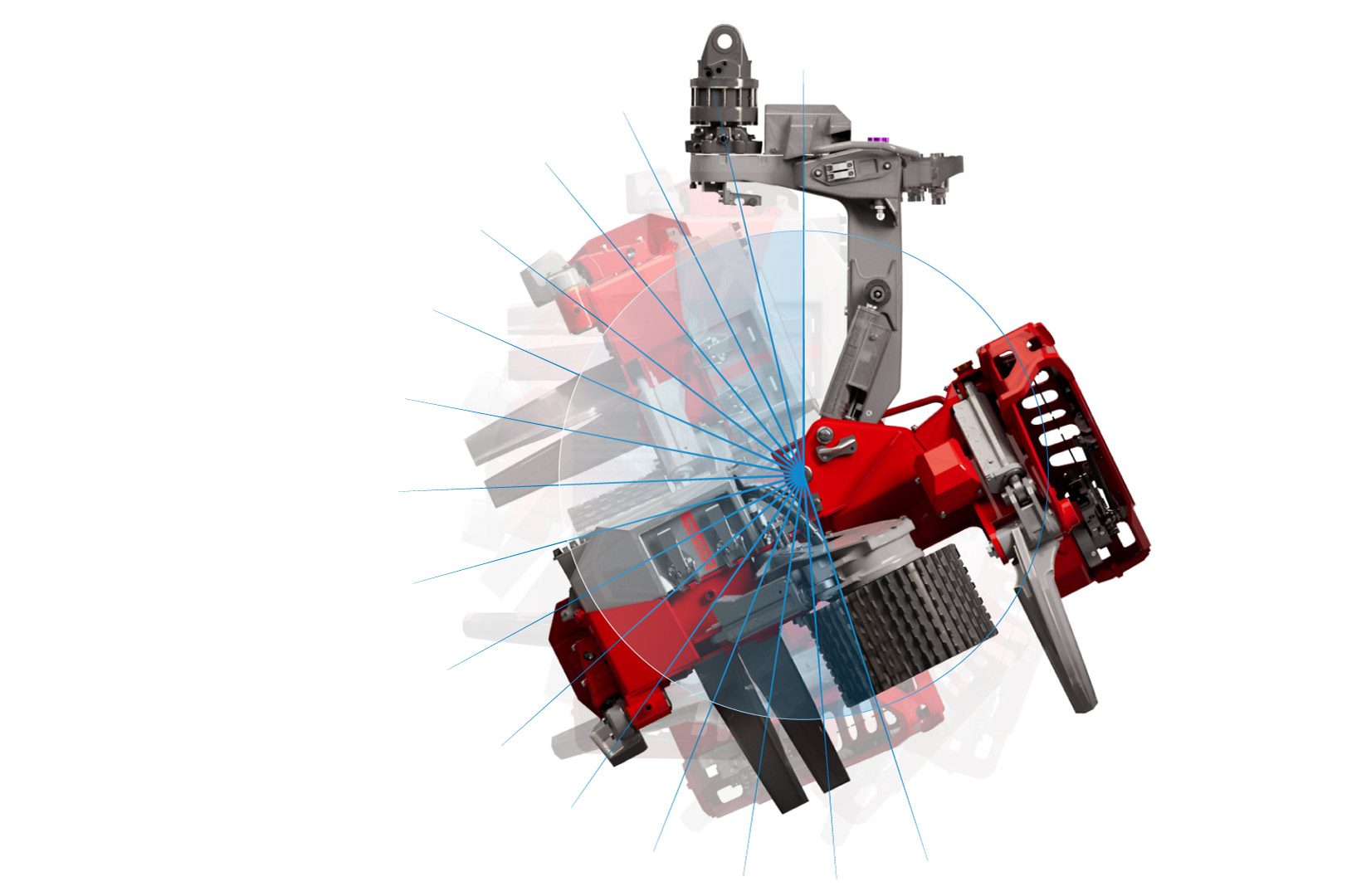 To simplify service, facilitate transport and increase safety, a "Safety Pin" has replaced the safety chain, which forms a locking mechanism between the frame and the felling link. You can now link a bracket under the rotator to a stand in the frame with the help of a locking pin.